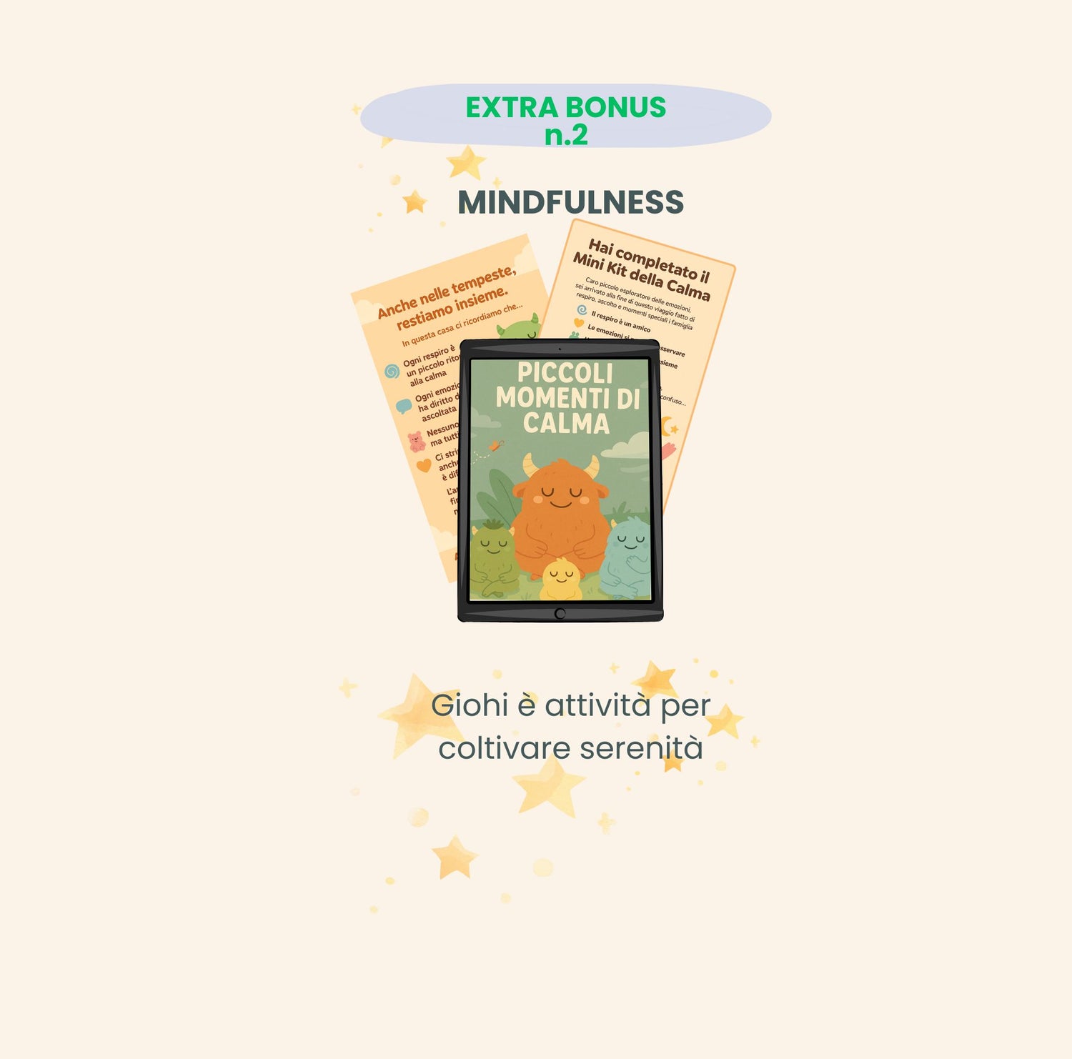 La mindfulness aiuta i bambini a fermarsi, respirare e ritrovare serenità. Con esercizi semplici ed illustrazioni guidate, i nostri kit insegnano la calma e la concentrazione in modo giocoso, diventando un aiuto prezioso nei momenti di agitazione e stress.